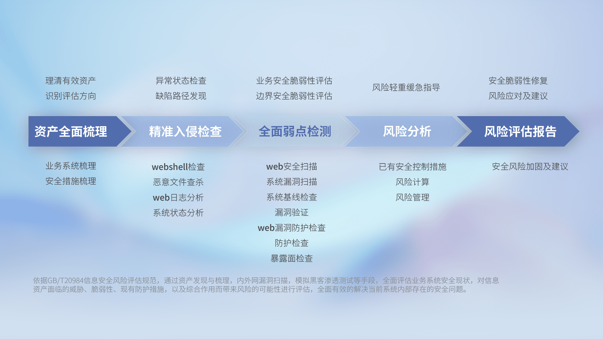 针对客户行业特性,,,,以专业的安全服务+多厂商联合解决方案提供专属的一站式安全管理服务,,,帮助客户全面感知网络空间威胁,,,基于识别、、、检测、、、、分析、、防护、、、监测、、、、响应的服务理论模型,,,,从方案咨询、、集成交付、、、评估验证、、、优化加固、、、、运维运营,,,,致力于为客户提供完整的闭环管理式安全服务。。以实战经验为客户打造高抵御风险的安全体系,,,,帮助客户发现威胁、、、、对抗威胁、、、处置威胁,,,不断积累安全对抗能力,,持续保障数字化安全。。。。